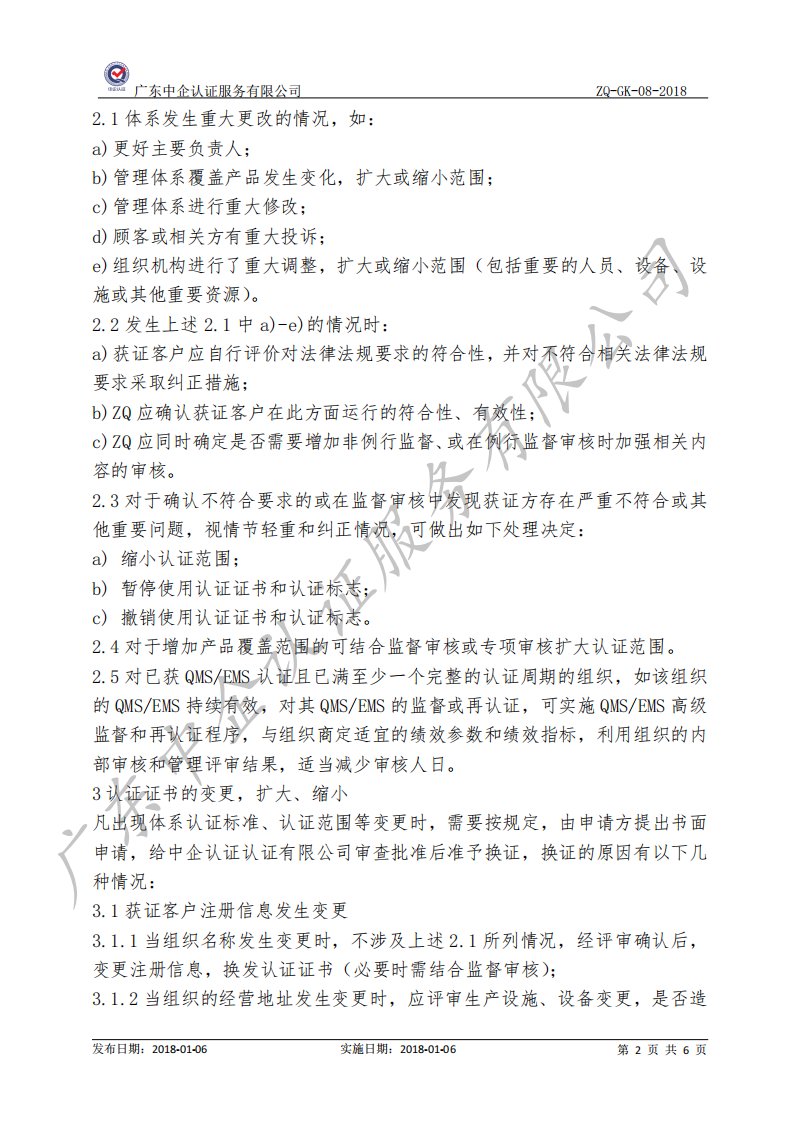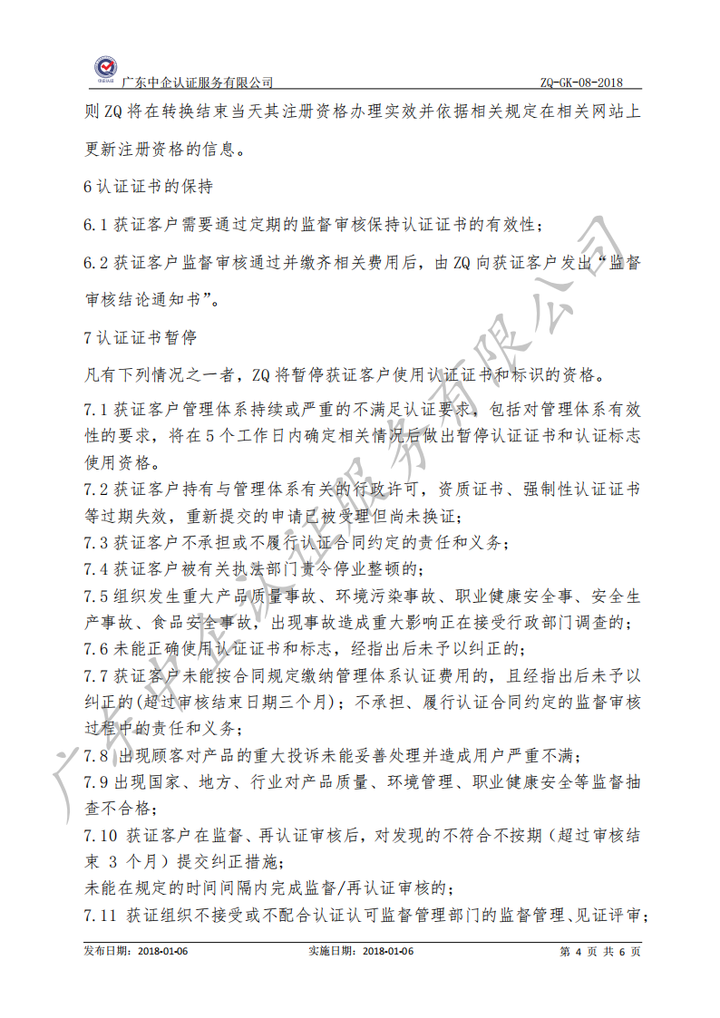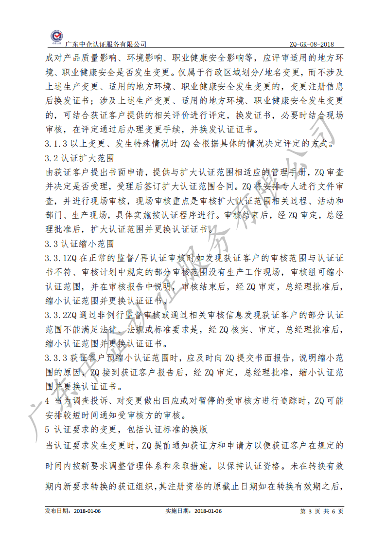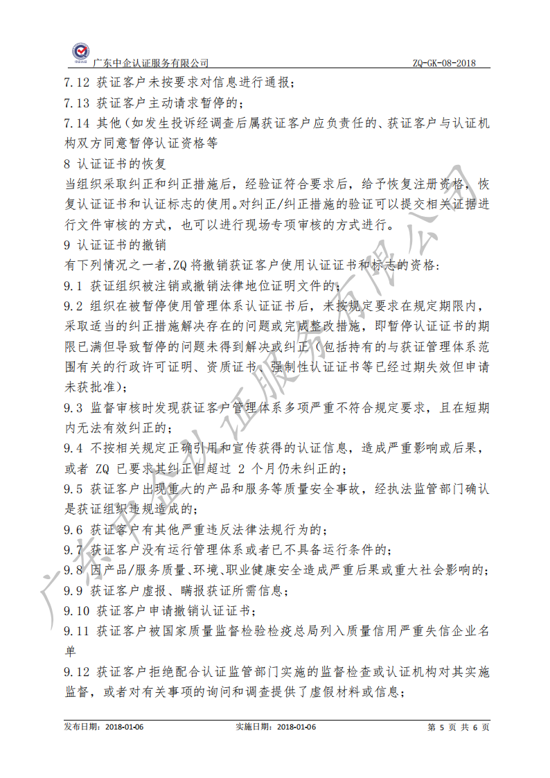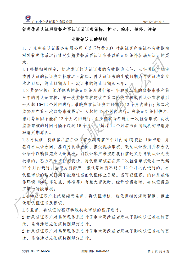 监督和再认证及证书保持、扩大、缩小、暂停、注销及撤销认证的规则