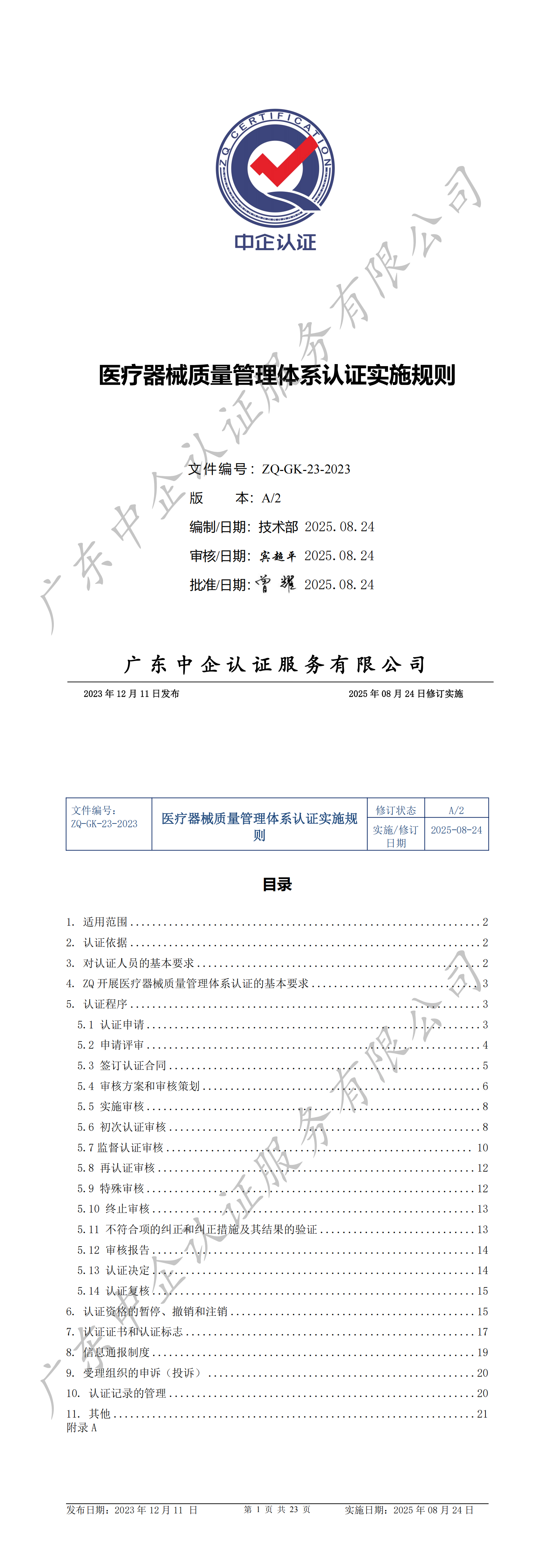 已公示医疗器械质量管理体系认证实施规则封面及目录,若需获取全文可通过以下途径获取: