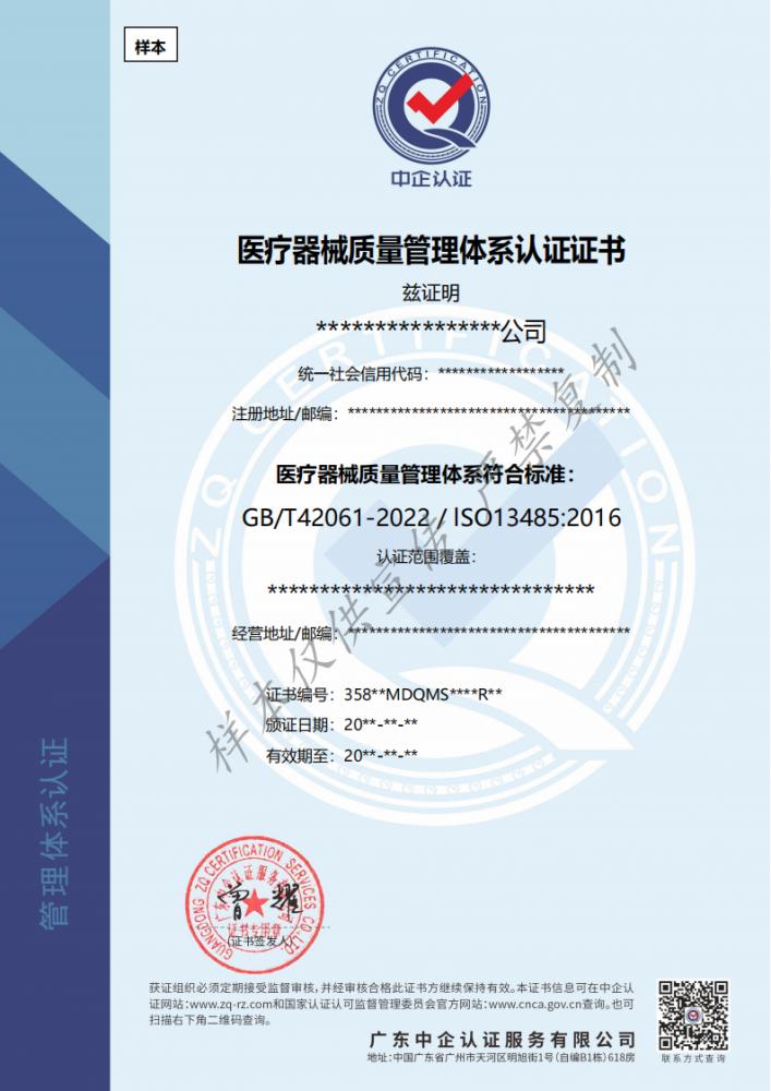 GB/T 42061-2022/ISO 13485:2016《医疗器械质量管理体系用于法规的要求》认证标准是专门用于医疗器械产业的一个完全独立的标准,它以医疗器械法规为主线,强调实施医疗器械法规的重要性,提出相关的医疗器械法规要求,确保医疗器械产品在设计、开发、生产、组装、运输、处置等所有阶段安全有效。