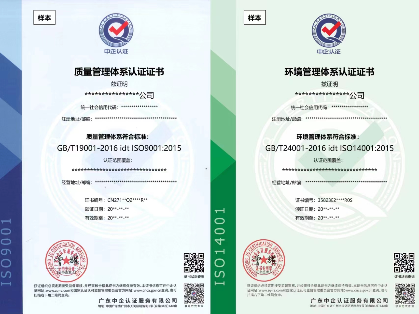 带标QES证书样本: